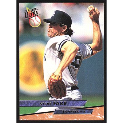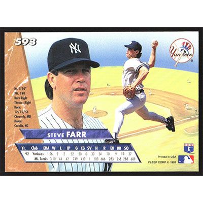 This is a 1993 Ultra Steve Farr baseball card. The card is #593 and pictures show condition.