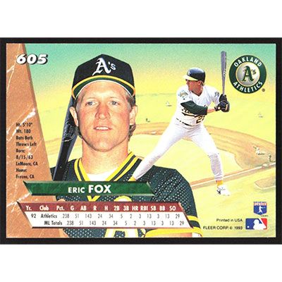 This is a 1993 Ultra Eric Fox baseball card. The card is #605 and pictures show condition.