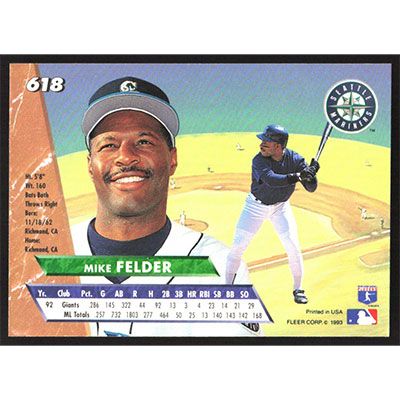 This is a 1993 Ultra Mike Felder baseball card. The card is #618 and pictures show condition.