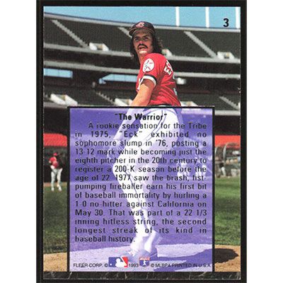 This is a 1993 Ultra Dennis Eckersley Career Highlights Dennis Eckersley baseball card. The card is #3 and pictures show condition. Team(s): Cleveland Indians