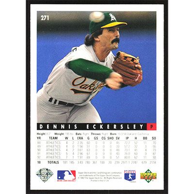 This is a 1993 Upper Deck Dennis Eckersley baseball card. The card is #271 and pictures show condition.