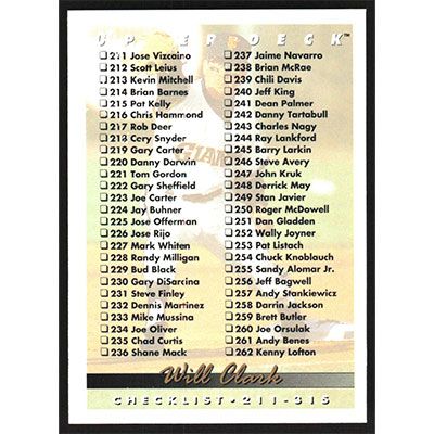 This is a 1993 Upper Deck Will Clark Checklist baseball card. The card is #315 and pictures show condition.