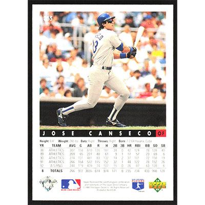 This is a 1993 Upper Deck Jose Canseco baseball card. The card is #365 and pictures show condition.