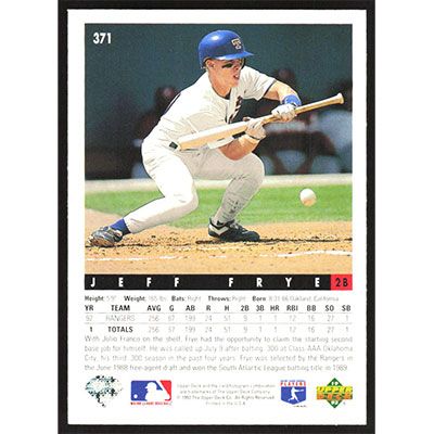 This is a 1993 Upper Deck Jeff Frye baseball card. The card is #371 and pictures show condition.
