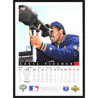 This is a 1993 Upper Deck Cecil Fielder baseball card. The card is #564 and pictures show condition.