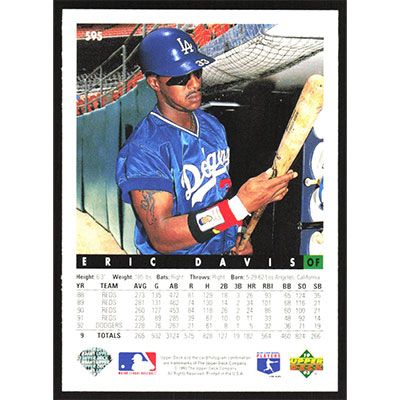 This is a 1993 Upper Deck Eric Davis baseball card. The card is #595 and pictures show condition.