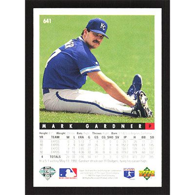 This is a 1993 Upper Deck Mark Gardner baseball card. The card is #641 and pictures show condition.