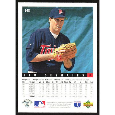 This is a 1993 Upper Deck Jim Deshaies baseball card. The card is #648 and pictures show condition.