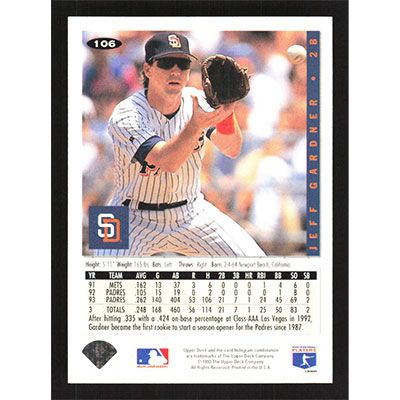 This is a 1994 Collector's Choice Jeff Gardner baseball card. The card is #106 and pictures show condition.