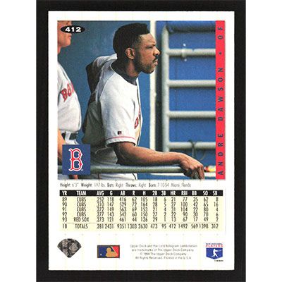 This is a 1994 Collector's Choice Andre Dawson baseball card. The card is #412 and pictures show condition.