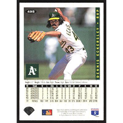 This is a 1994 Collector's Choice Dennis Eckersley baseball card. The card is #495 and pictures show condition.