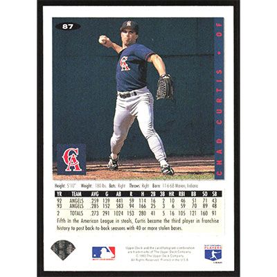 This is a 1994 Collector's Choice Chad Curtis baseball card. The card is #87 and pictures show condition.