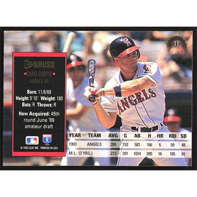 This is a 1994 Donruss Chad Curtis baseball card. The card is #11 and pictures show condition.