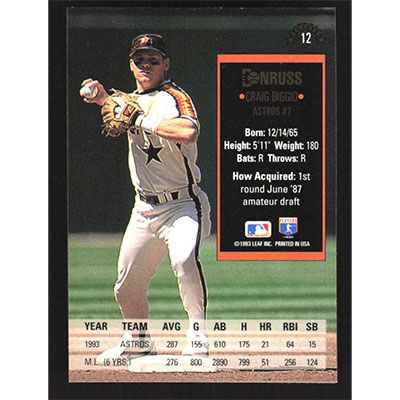 This is a 1994 Donruss Craig Biggio baseball card. The card is #12 and pictures show condition.
