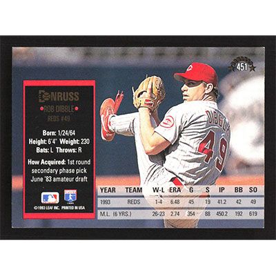 This is a 1994 Donruss Rob Dibble baseball card. The card is #451 and pictures show condition.