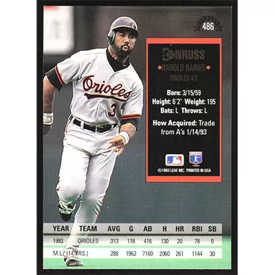 This is a 1994 Donruss Harold Baines baseball card. The card is #486 and pictures show condition.