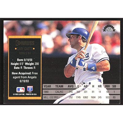 This is a 1994 Donruss Gary Gaetti baseball card. The card is #502 and pictures show condition.