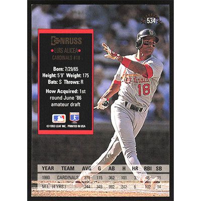 This is a 1994 Donruss Luis Alicea baseball card. The card is #534 and pictures show condition.
