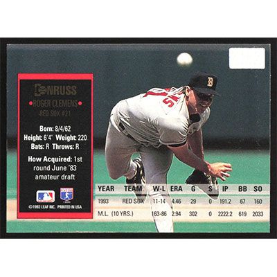 This is a 1994 Donruss Special Edition Roger Clemens baseball card. The card is #76 and pictures show condition.
