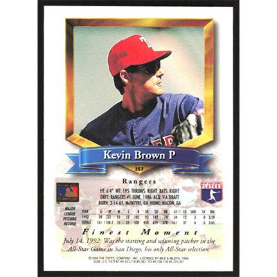 This is a 1994 Finest Kevin Brown baseball card. The card is #257 and pictures show condition.