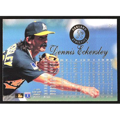 This is a 1994 Flair Dennis Eckersley baseball card. The card is #91 and pictures show condition.