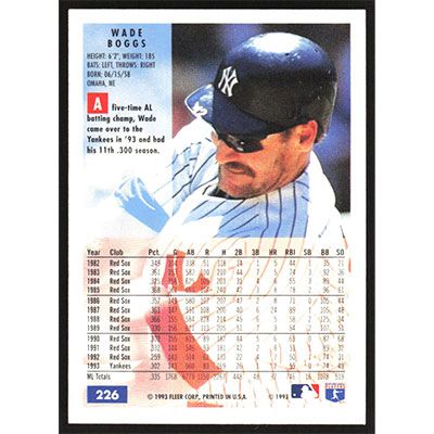 This is a 1994 Fleer Wade Boggs baseball card. The card is #226 and pictures show condition.