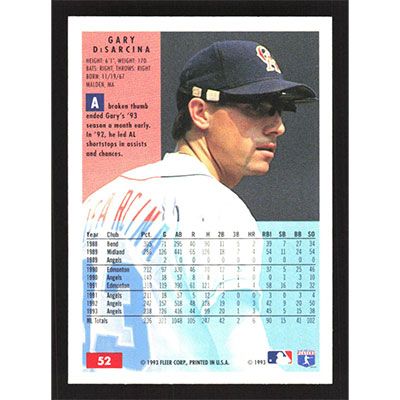 This is a 1994 Fleer Gary DiSarcina baseball card. The card is #52 and pictures show condition.