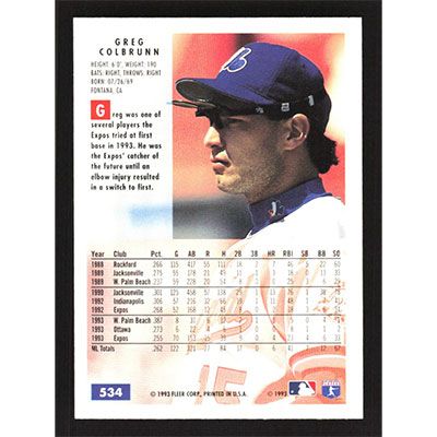 This is a 1994 Fleer Greg Colbrunn baseball card. The card is #534 and pictures show condition.