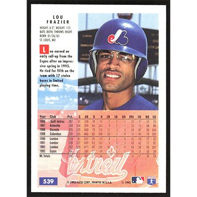This is a 1994 Fleer Lou Frazier baseball card. The card is #539 and pictures show condition.