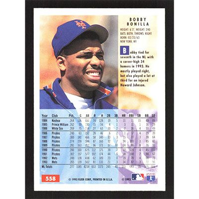 This is a 1994 Fleer Bobby Bonilla baseball card. The card is #558 and pictures show condition.