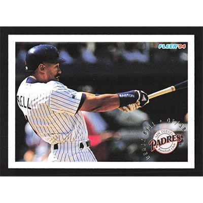 This is a 1994 Fleer Derek Bell baseball card. The card is #655 and pictures show condition.