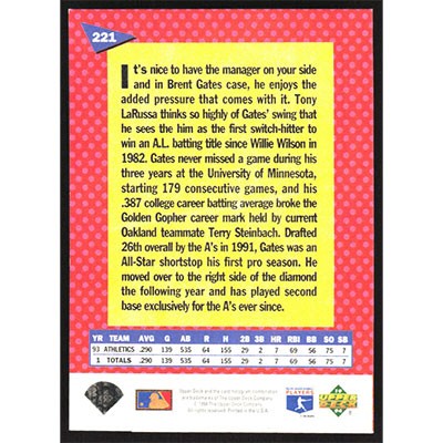 This is a 1994 Fun Pack Brent Gates Fold Outs baseball card. The card is #221 and pictures show condition.
