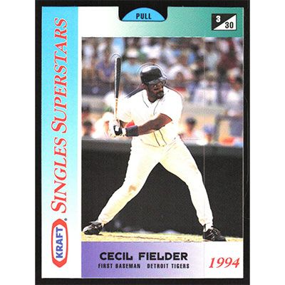 This is a 1994 Kraft Cecil Fielder baseball card. The card is #3 and pictures show condition.