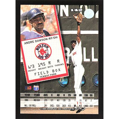 This is a 1994 Leaf Andre Dawson baseball card. The card is #142 and pictures show condition.