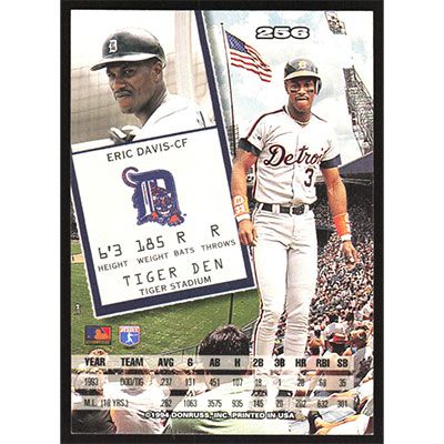 This is a 1994 Leaf Eric Davis baseball card. The card is #256 and pictures show condition.