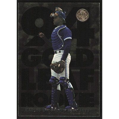 This is a 1994 Leaf Gold Rookies Carlos Delgado baseball card. The card is #10 and pictures show condition.