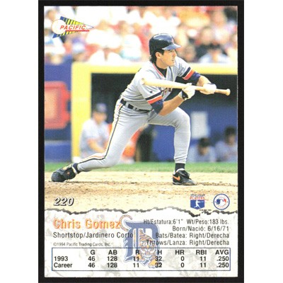 This is a 1994 Pacific Chris Gomez baseball card. The card is #220 and pictures show condition.