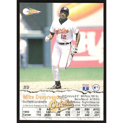 This is a 1994 Pacific Mike Devereaux baseball card. The card is #29 and pictures show condition.