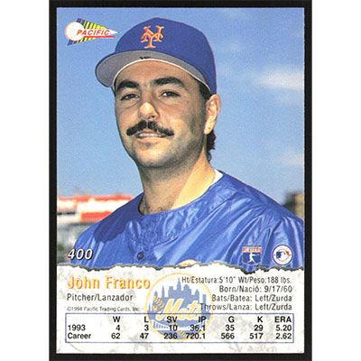 This is a 1994 Pacific John Franco baseball card. The card is #400 and pictures show condition.