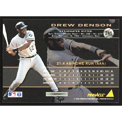 This is a 1994 Pinnacle Drew Denson baseball card. The card is #241 and pictures show condition.