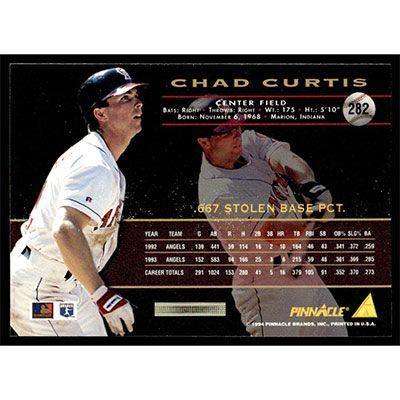 This is a 1994 Pinnacle Chad Curtis baseball card. The card is #282 and pictures show condition.