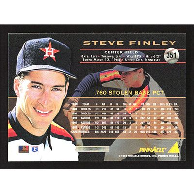 This is a 1994 Pinnacle Steve Finley baseball card. The card is #351 and pictures show condition.