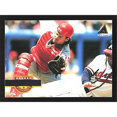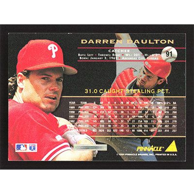 This is a 1994 Pinnacle Darren Daulton baseball card. The card is #91 and pictures show condition.