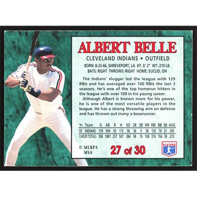 This is a 1994 Post Albert Belle baseball card. The card is #27 and pictures show condition.