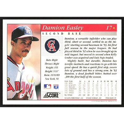 This is a 1994 Score Damion Easley baseball card. The card is #17 and pictures show condition.