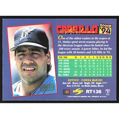 This is a 1994 Score Rookie/Traded Gold Rush Matias Carrillo baseball card. The card is #RT138 and pictures show condition.