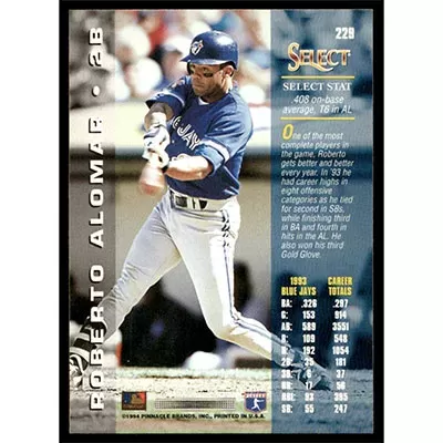 This is a 1994 Select Roberto Alomar baseball card. The card is #229 and pictures show condition.