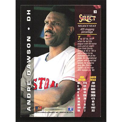 This is a 1994 Select Andre Dawson baseball card. The card is #93 and pictures show condition.