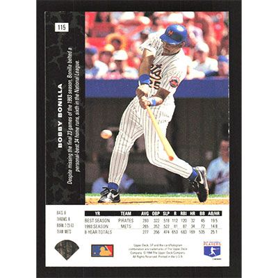 This is a 1994 SP Bobby Bonilla baseball card. The card is #115 and pictures show condition.