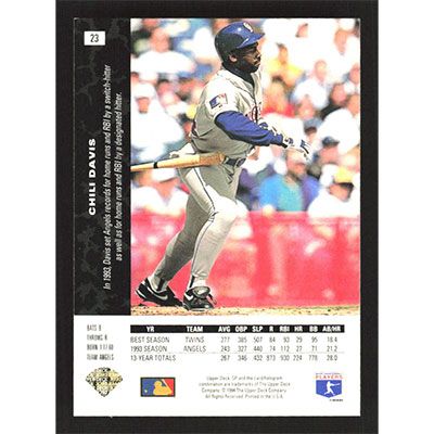 This is a 1994 SP Chili Davis baseball card. The card is #23 and pictures show condition.